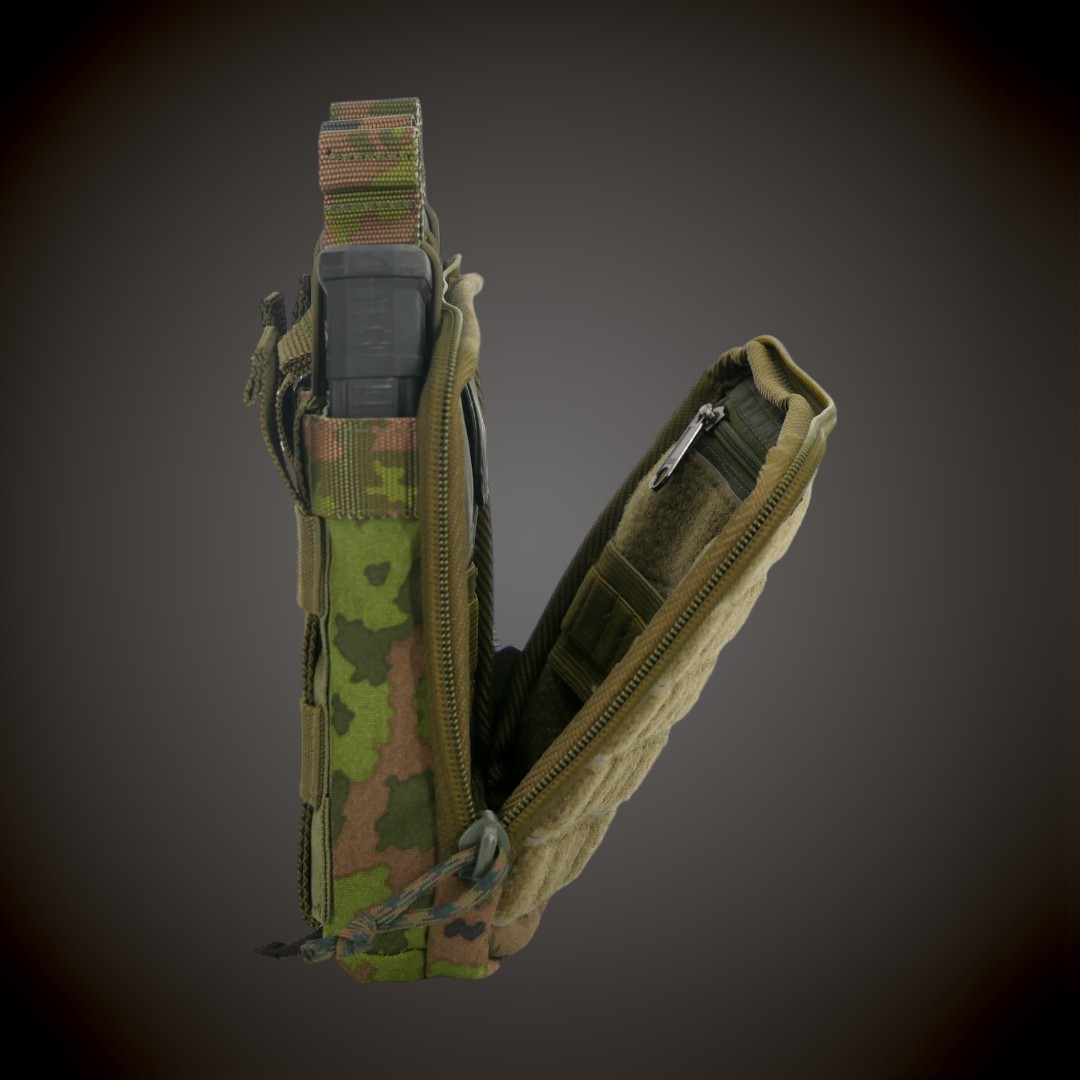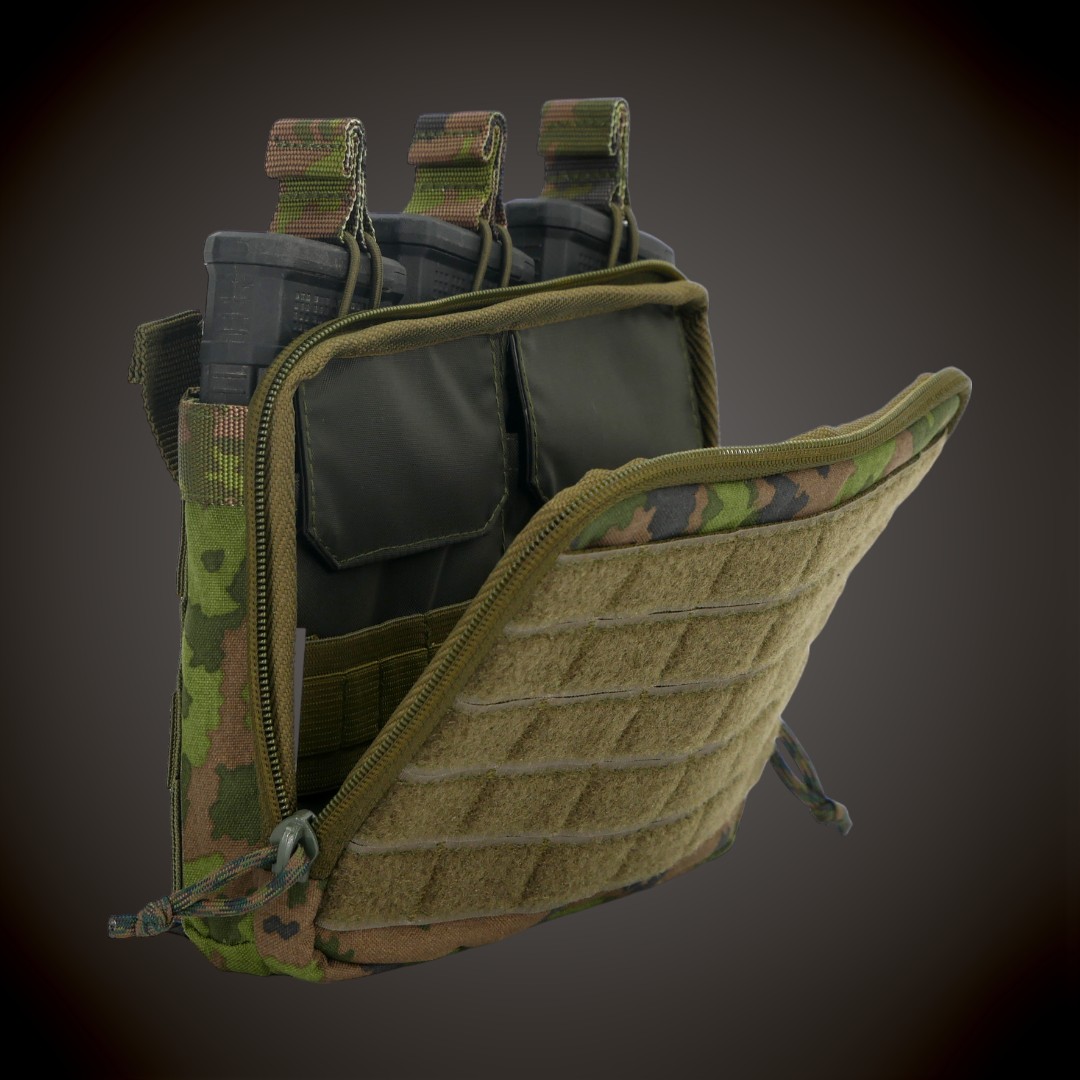 3 salve-admini tasku kinnitub MOLLE süsteemiga. Tasku esipaneelil on 5 takjaribaga kaetud MOLLE riba, et vajadusel kinnitada muud varustust või embleeme.