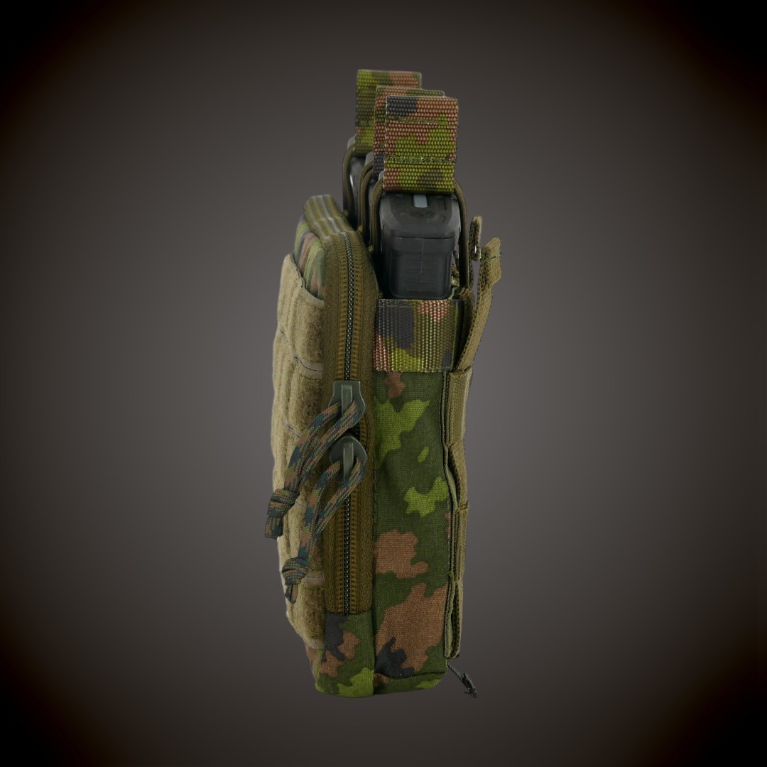 3 salve-admini tasku kinnitub MOLLE süsteemiga. Tasku esipaneelil on 5 takjaribaga kaetud MOLLE riba, et vajadusel kinnitada muud varustust või embleeme.